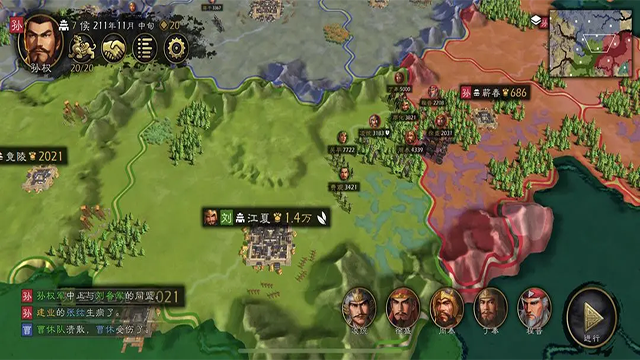 结盟:和其他势力结盟,最好60关系以上结盟,成功率高。