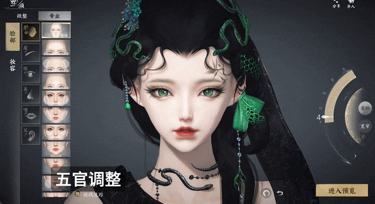 天下万象的捏脸系统支持超40个脸部模块自定义,有30余种全新材质初始发型可选,15个精细化妆容区域可自由调节,新引擎助力实现自由塑颜。