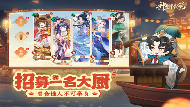 金牌厨娘掌舵,十八般厨艺样样通!除了美食,船上的俊男靓女也是养眼又养胃!各种名厨伶人各怀绝技,助你升级成长;各地名厨、伶人与乐师云集于此,他们是气场御姐、风流才子、可爱萝莉还是元气正太?一切皆等你上船揭晓这段邂逅!