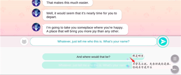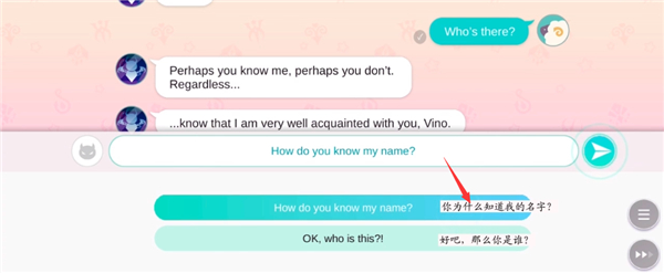 1.剧情开启,对方发来“Hello你好”,我们回应“你是谁”。