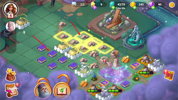 1.无尽合并玩法丰富,从普通岩石植物到独特魔杖神器皆可合并,还有三个无底洞可获取建筑材料与植物,资源获取轻松。