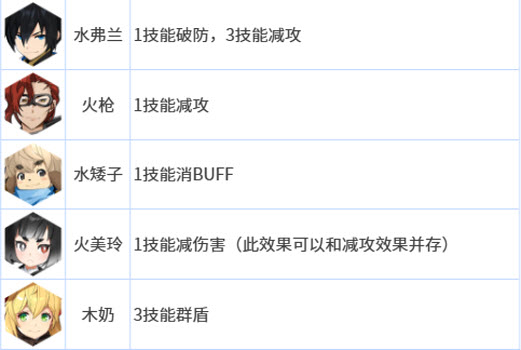 2.上述所选角色涵盖五个职业无重复,不存在装备冲突,利于初期均衡分配高级职业套装。因均为三星角色,原则上都需升到4星,要合理分配资源。