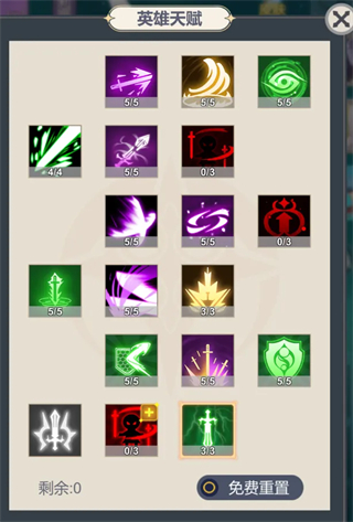 3.英雄轮回在60级开启,推荐此时进行,轮回快能快速点通用天赋升级,还可能抽到可升阶的神格装备。轮回点分配上,前期三个副角色优先点通用技能经验加成,主角色莉娜优先点满减伤、生命,最后点增伤。