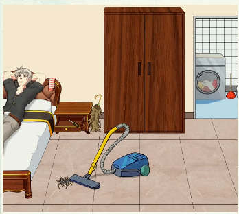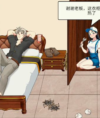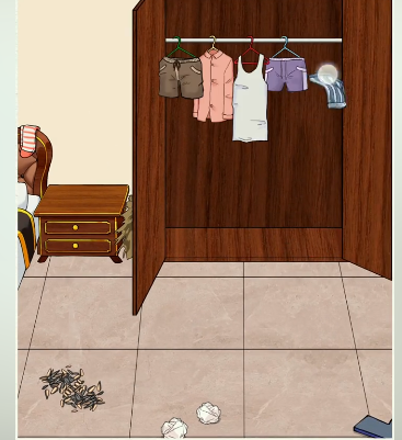 1、先是打开衣柜将钞票拖给修理工,把掉落的衣服挂在衣柜。