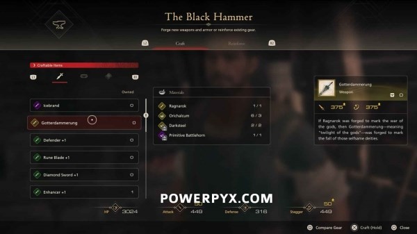 首先需要完成藏身处的布莱克索恩(铁匠)系列支线任务【锻造师与坚持】,总共包含4个小任务(I-IV),最早在主线任务35期间于藏身处解锁。完成此任务线即可解锁【众神陨落设计图】,之后可以在铁匠处制作【众神陨落】,完成此任务线也可以获得第一个必要材料【诸神黄昏】。整个任务线也可以在通关之后再返回来完成,不用担心错过。