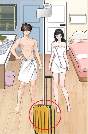 2、点击行李箱,会出现道具,然后将这些道具到两人身上。