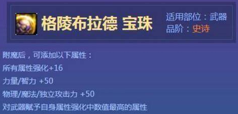 1、格陵布拉德宝珠 物理/魔法/独立/力量/智力+50,名望168,所有属性强化+16 武器