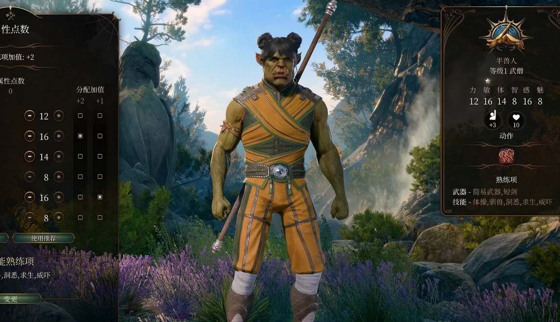 《博德之门3》武僧职业的属性主要分配给敏捷属性,其次提升体质或者力量。推荐分配加点方案为8魅力,17敏捷,14力量,16体力,8智力和10感知。