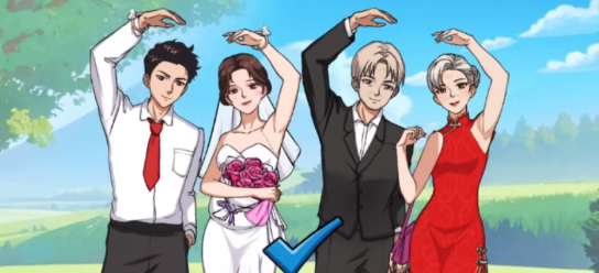7、点击新郎搂着婆婆的手,手消失;