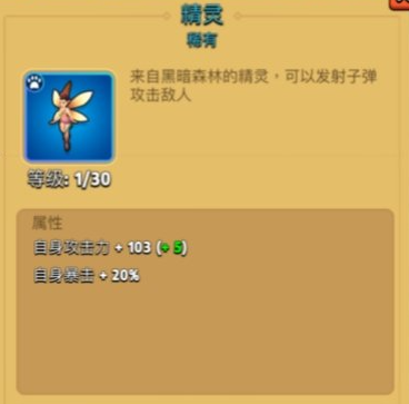 小精灵 攻速还好,并且攻击的时候附带 击退效果,比较不错的一个宠物,没有击退的可以选择双精灵的套路防止怪物近身,小精灵也是可以击退BOSS的。