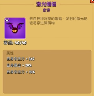 蝙蝠 ,攻击穿透障碍物,效率高, 射速快,激光帅,T1宠物。