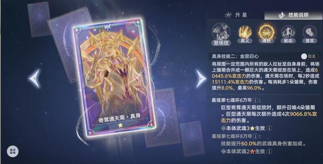 菊花真身可继续升星,初始为黄色1星,升星道具靠后续活动获取。未来新真身可能非免费,且每个真身都有升星操作,这将是巨大的培养深坑,也是战力提升潜力点。