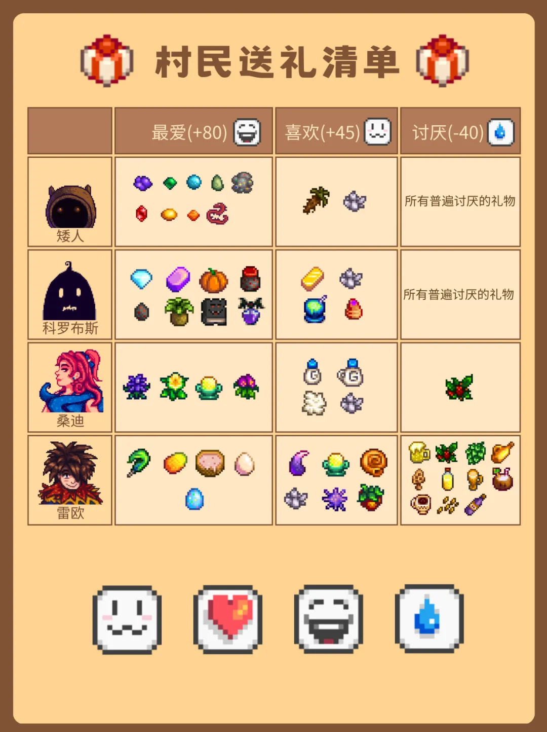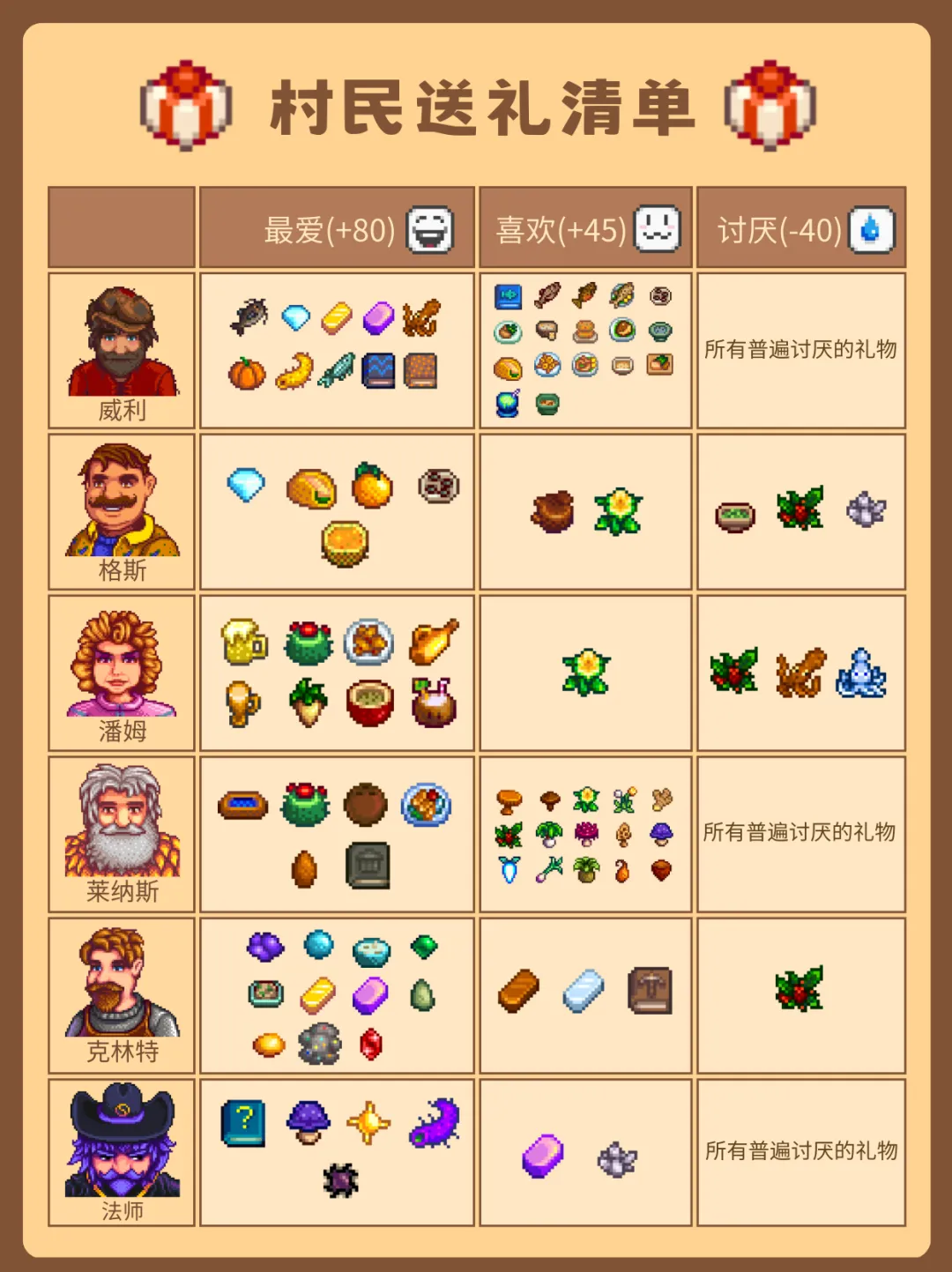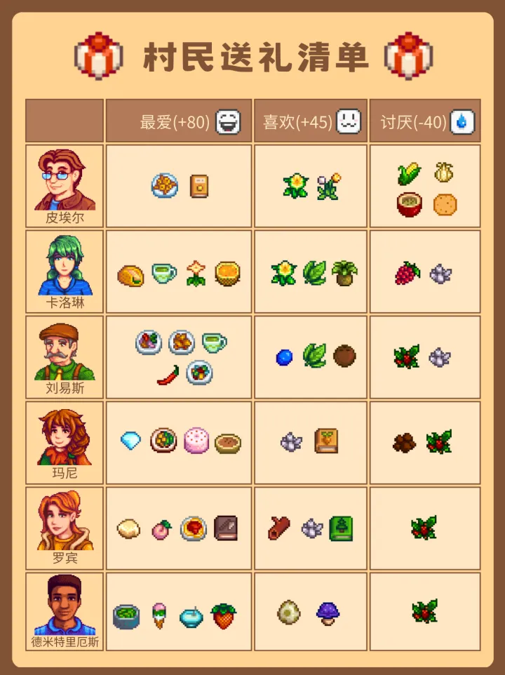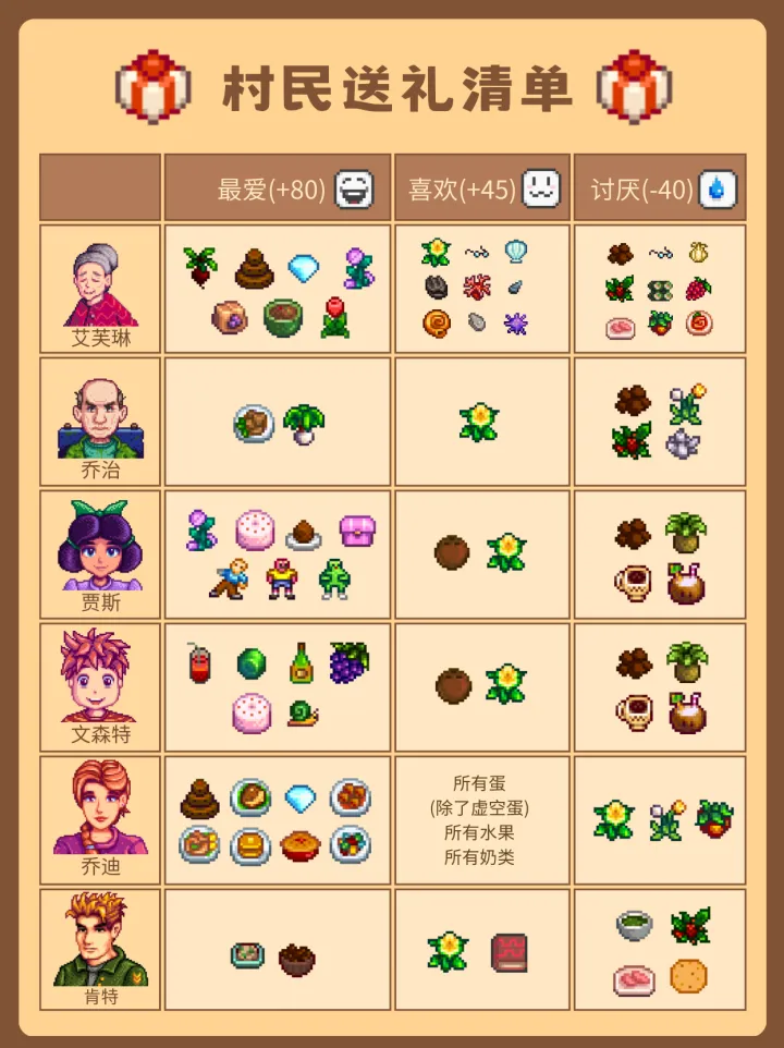 2.给22位可社交村民送礼前,需提前了解他们各自喜爱的物品,精准送礼才能提升好感。