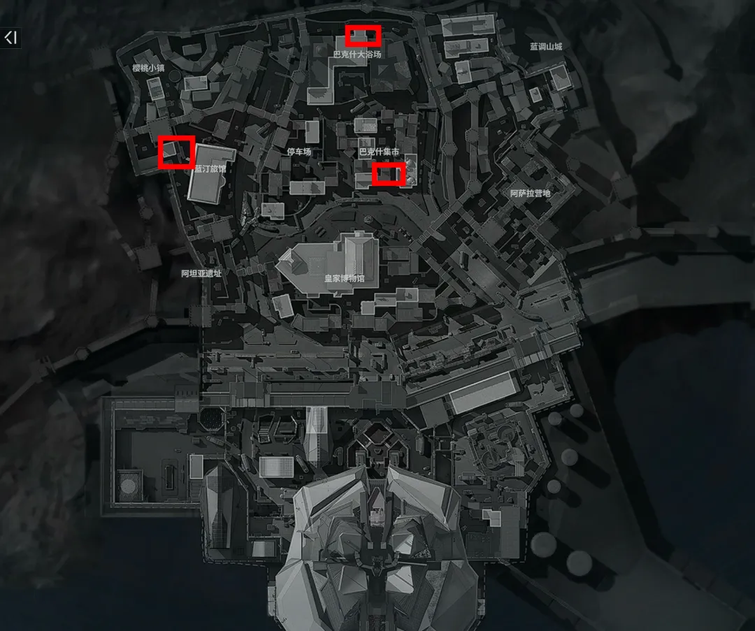 巴克什,密码房两个,集市有一个,蓝汀旁边需要听密码!