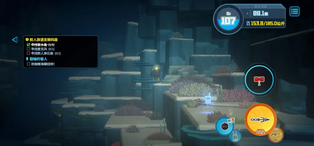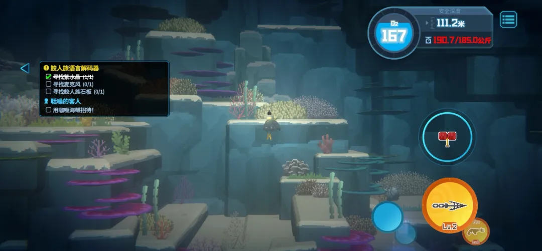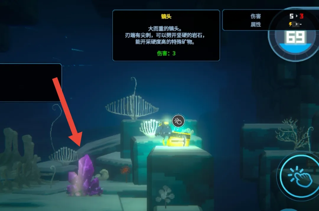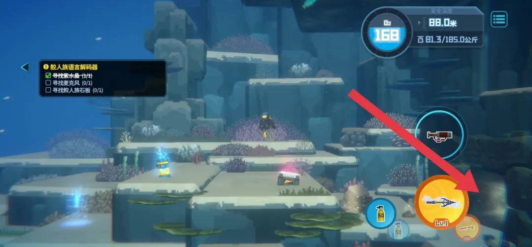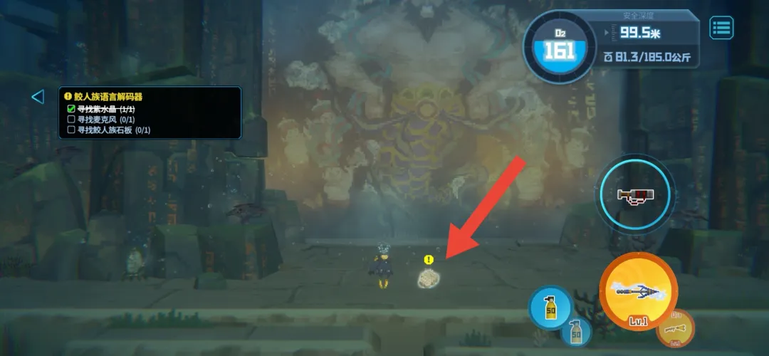 做翻译器的紫水晶大家应该都知道在哪里,进入深海开黄箱拿到镐头,就可以挖紫水晶了,一般紫水晶附近的黄箱都能开出镐头,要注意紫水晶附近可能会有瞻星鱼