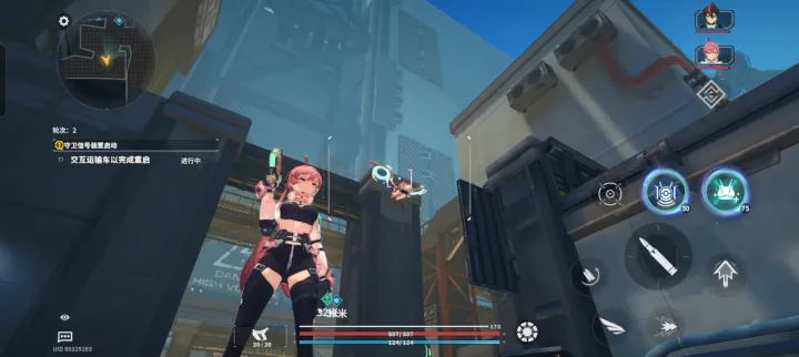 普通跳跃至台子最高点,立刻按女主角滞空,角色悬浮抬高后迅速闪避,紧接着连按跳跃。四键连招间隔不超过0.5秒,高度刚好够上台子。