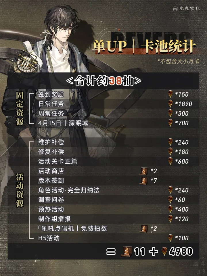 但需注意,以上估算默认玩家打满人工梦游与迷思海等活动,若打不满则需自行减去相应抽数。
